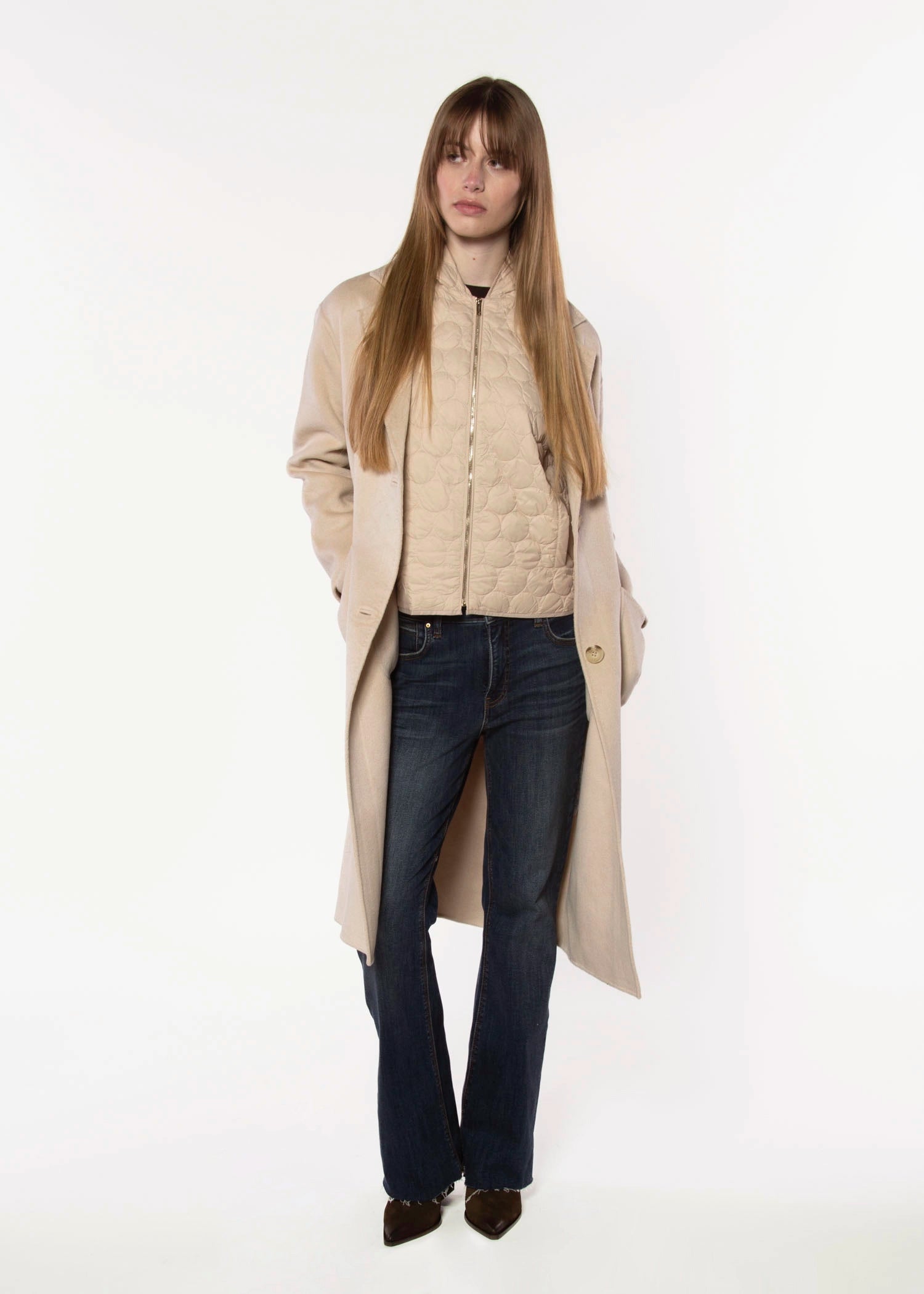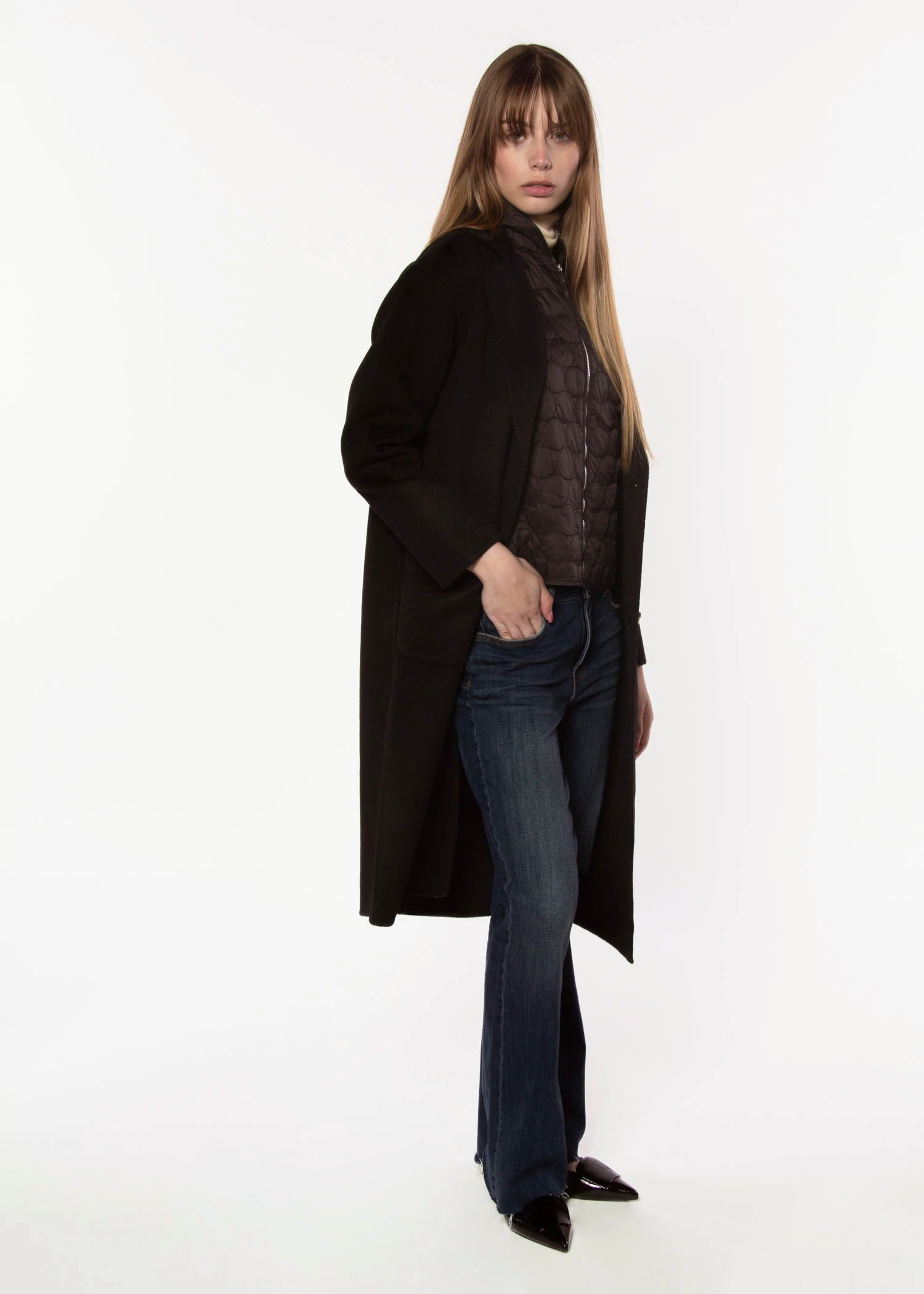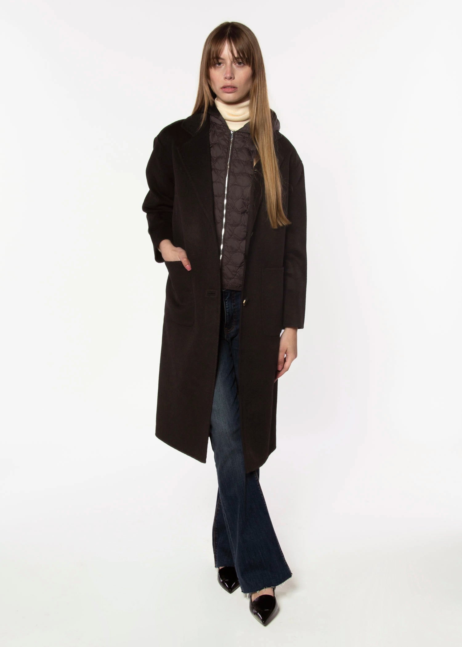 The Femia coat is a two for one: a luxurious brushed wool coat layered over a light weight down hooded vest. Wear them together or on their own giving you so many styling options.