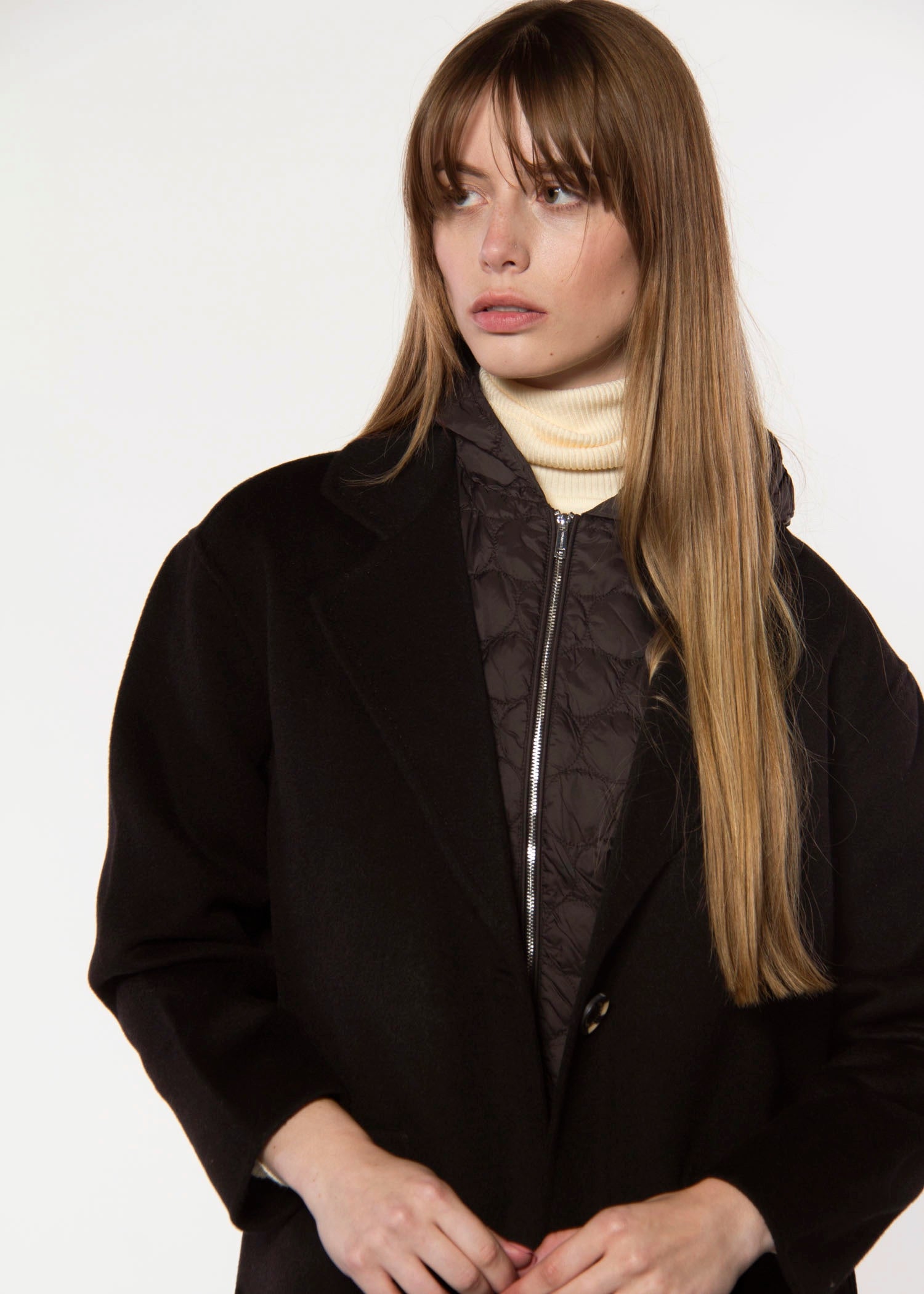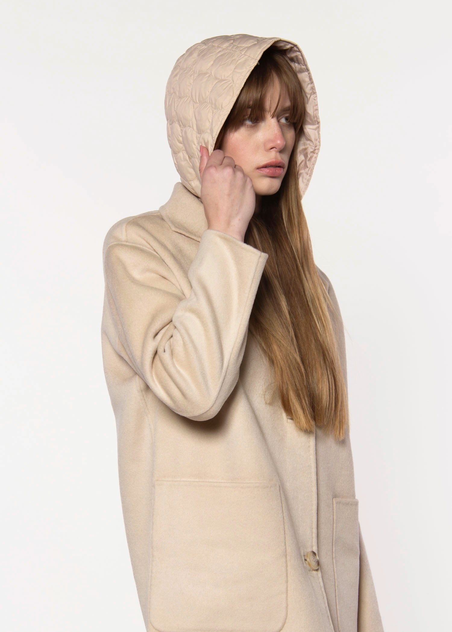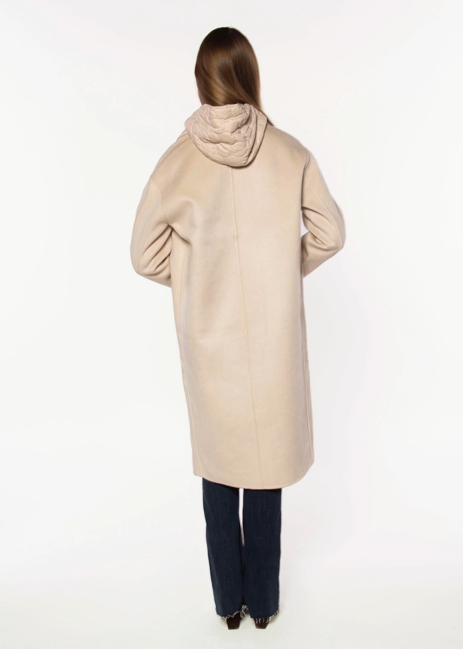 The Femia coat is a two for one: a luxurious brushed wool coat layered over a light weight down hooded vest. Wear them together or on their own giving you so many styling options.