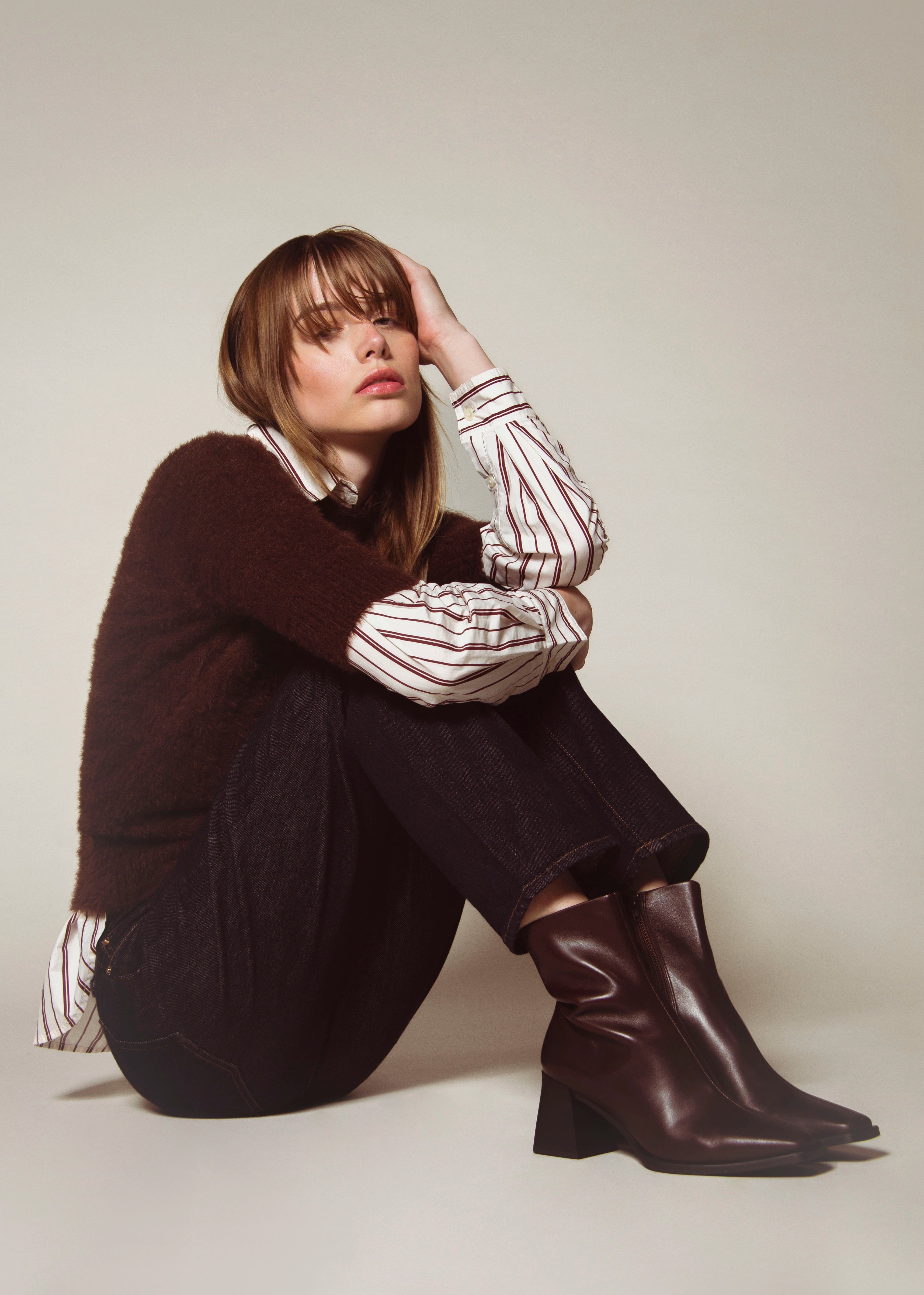 The Bri jean sits comfortably at a high rise and features a slim straight leg that hits at ankle length. The dark wash is perfect for fall.