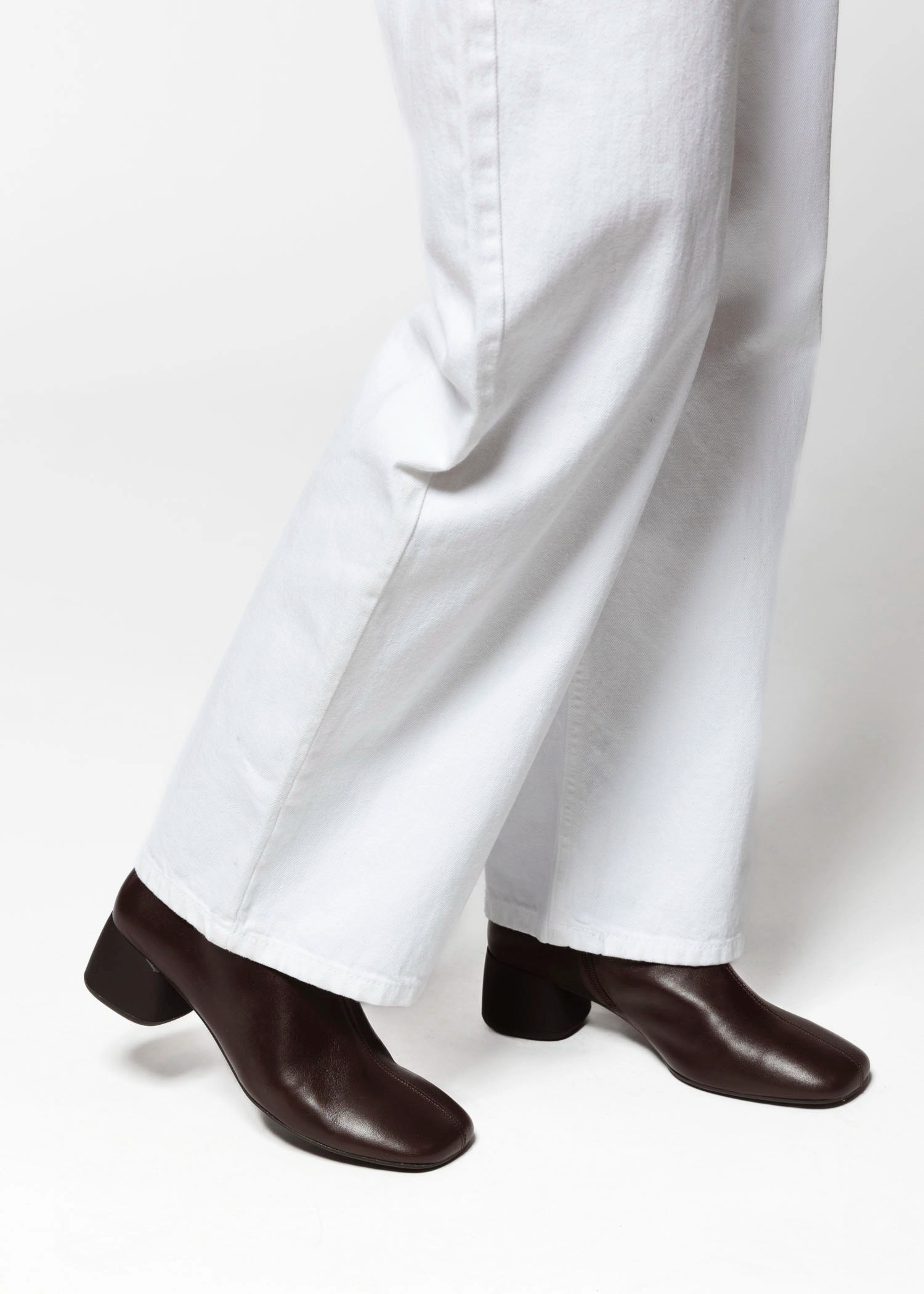 The Livia is a refined, edgy boot. Made from sleek leather, it has a softly rounded toe shape making it perfect for everyday wear.