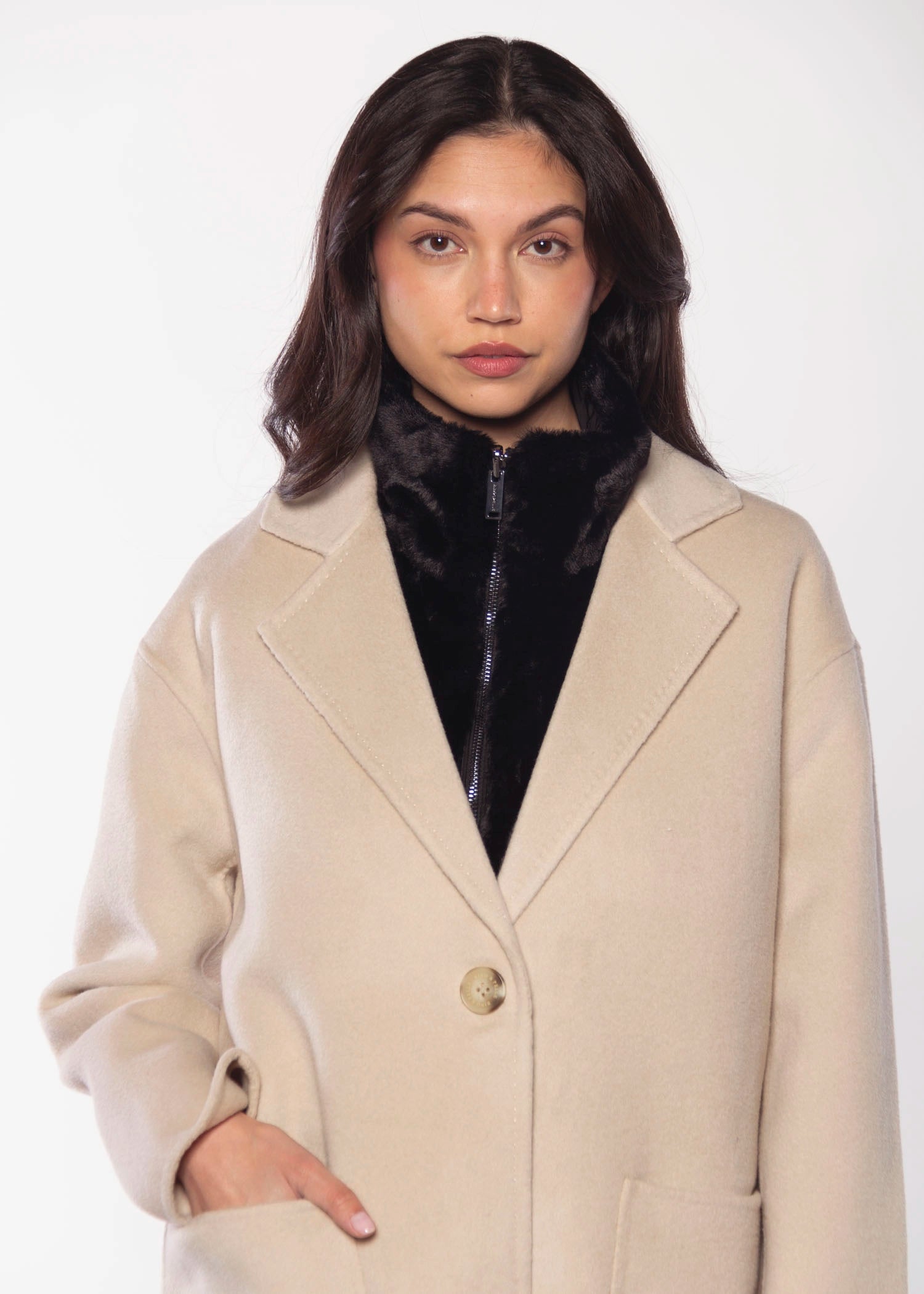 Add a touch of warmth and style with this cozy jacket insert. Designed with a high collar and front zip closure, it's a versatile accessory to elevate any look.