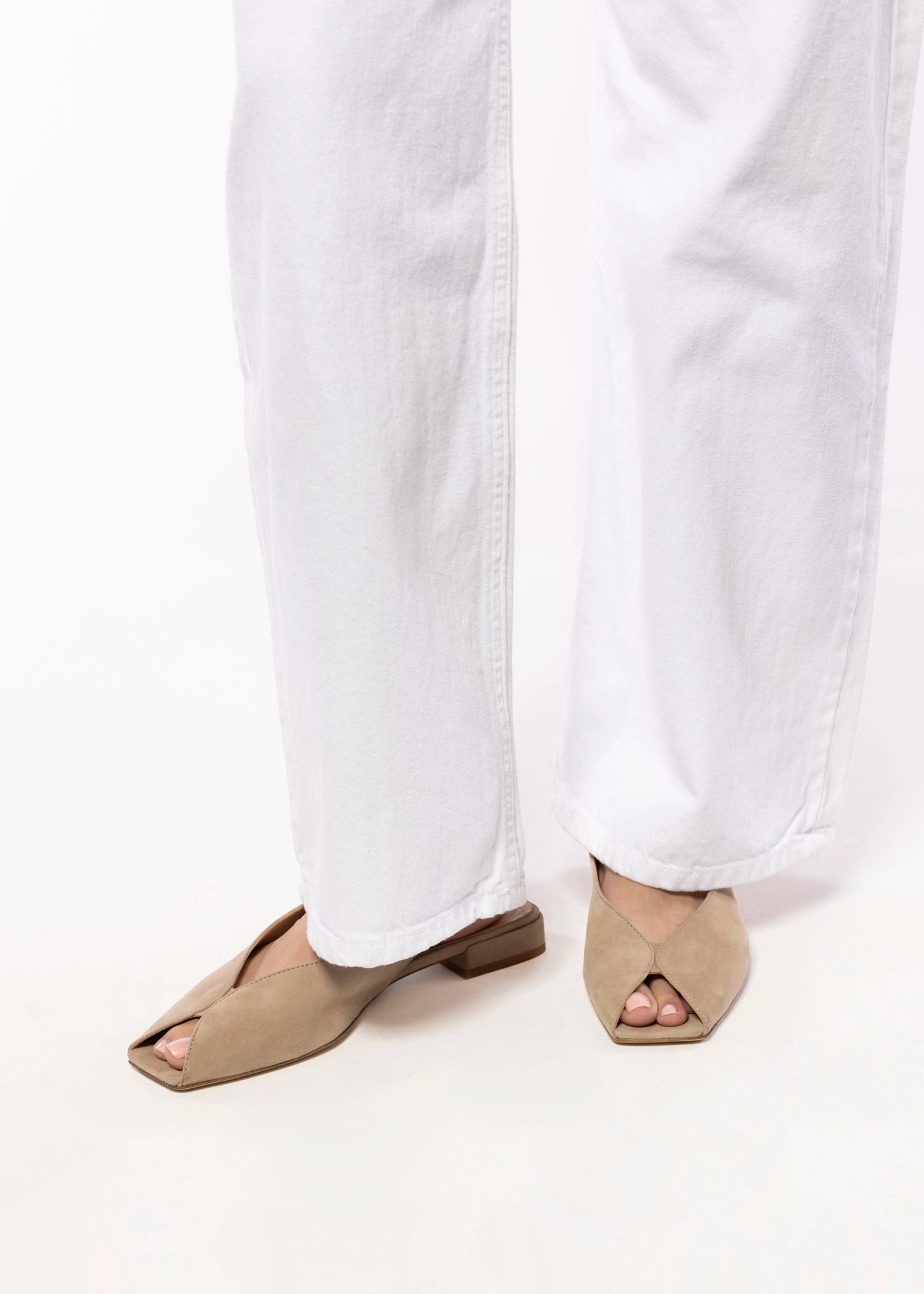 A unique triangular peep toe makes this suede sandal stand out. Dress it up or down, it has endless styling possibilites.