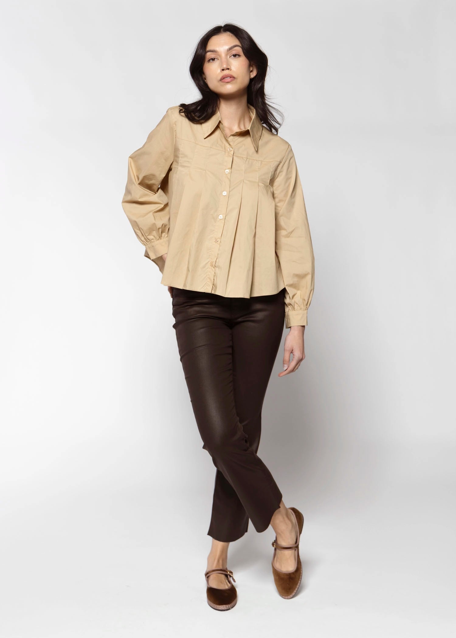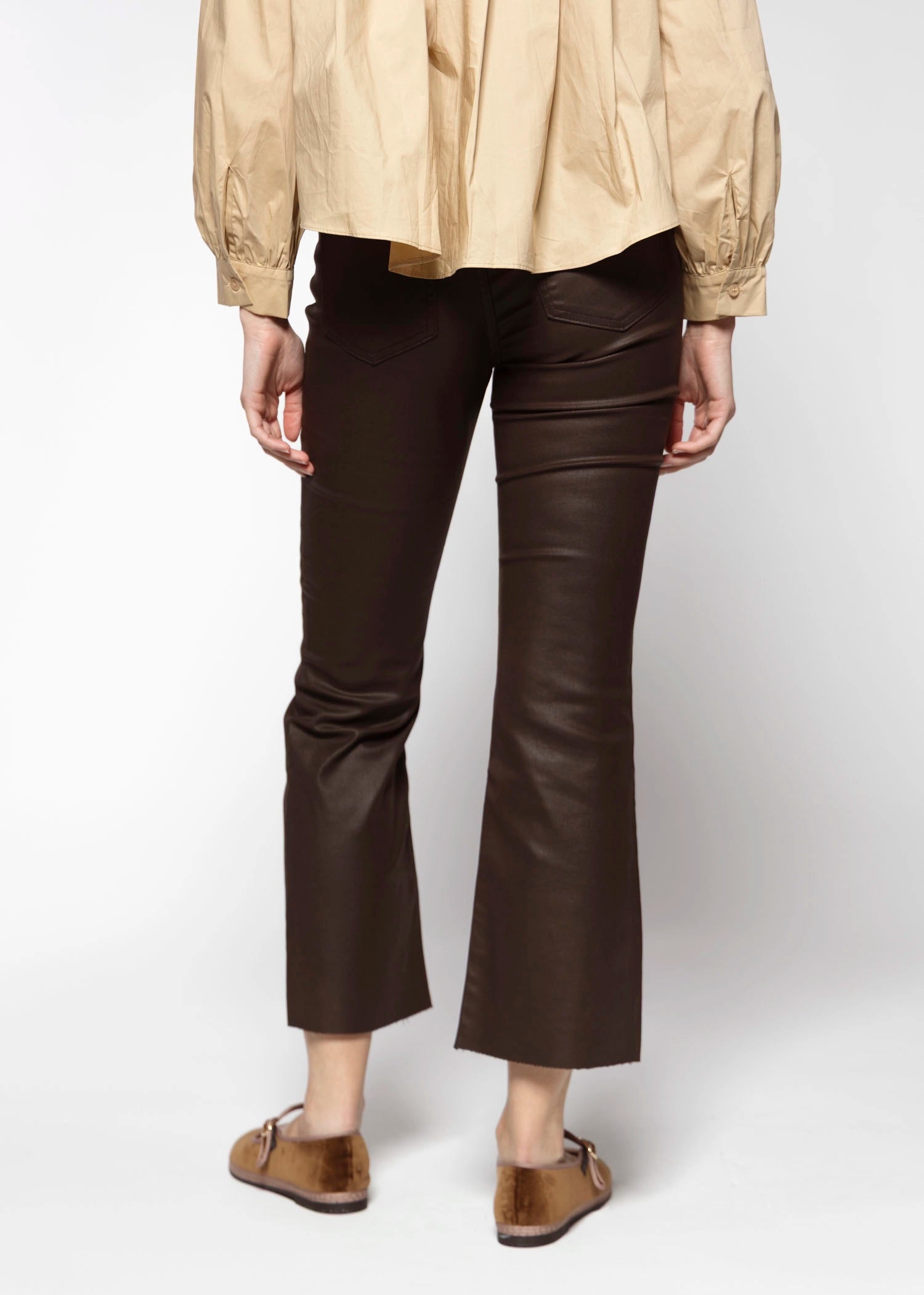 The Kelsey is a high rise, ankle flare jean with a matte coating. perfect to dress up or down, they offer a versatile style that transitions effortlessly from day to night.